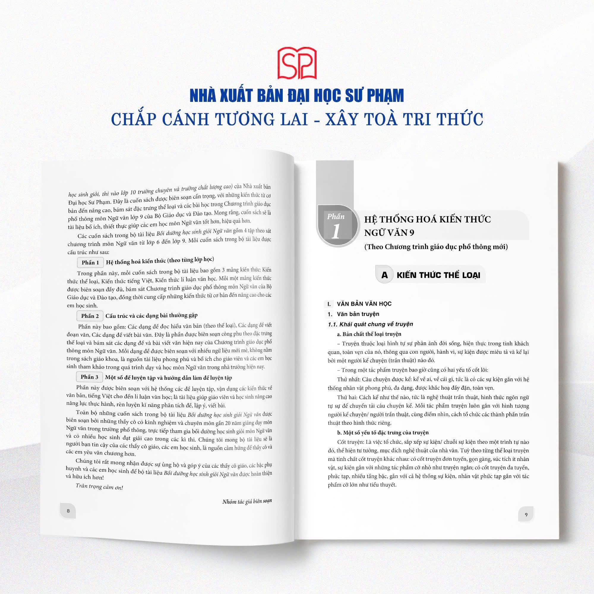 Với mục tiêu ấy, Nhà xuất bản Đại học Sư phạm giới thiệu cuốn “Bồi dưỡng học sinh giỏi Ngữ văn 9” người bạn đồng hành đáng tin cậy của giáo viên và học sinh trên hành trình nuôi dưỡng và chinh phục niềm đam mê Ngữ văn.