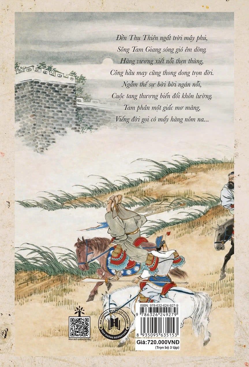 "Tam quốc diễn nghĩa là cuốn tiểu thuyết dã sử về lịch sử Trung Quốc được nhà văn La Quán Trung viết vào thế kỷ 14. Tiểu thuyết kể về thời kỳ hỗn loạn trong lịch sử Trung Hoa giai đoạn cuối thời Đông Hán và sau đó là Tam Quốc (184–280). Tam quốc diễn nghĩa có tổng cộng 120 chương hồi, được kể theo phương pháp bảy phần thực, ba phần hư. Tiểu thuyết này được đánh giá là tác phẩm văn học kinh điển và được vinh danh là một trong Tứ đại danh tác của văn học Trung Quốc. Điểm khác biệt mới: - LỜI GIỚI THIỆU của PGS. TS. NGƯT Lê Huy Tiêu & PGS. TS. NGƯT Lê Đức Niệm, hai nhà giáo ưu tú đã sửa chữa bản hiệu đính Tam quốc diễn nghĩa của Bùi Kỷ và viết thêm lời giới thiệu vào năm 1995; - LỜI TỰA CỦA THÁNH THÁN về tác phẩm Tam quốc diễn nghĩa, được viết vào đời Thuận Trị (1643-1661); - LỜI TỰA CỦA THANH KHÊ CƯ SĨ viết vào đời Hàm Phong (1850-1861); - PHÉP ĐỌC TAM QUỐC hay Nguyên tắc nhận định về truyện Tam quốc của Mao Tôn Cương & Thánh Thán; - 240 tranh minh họa màu của họa sĩ Kim Hiệp Trung, được trình bày trong sách dưới dạng đen trắng và full trang, tương ứng với 120 hồi, mỗi hồi gồm 02 tranh khắc họa sự kiện nổi bật diễn ra trong hồi đó; - Trong 240 tranh, ban biên tập đã chọn ra 54 tranh để in màu cho bộ bài tây tặng kèm; - Bản đồ màu minh họa lãnh thổ, châu quận và yếu địa của ba nước NGỤY – THỤC – NGÔ để độc giả dễ dàng tham khảo các trận đánh và quá trình di chuyển của các nhân vật; - Lời bàn của Mao Tôn Cương sau mỗi hồi."